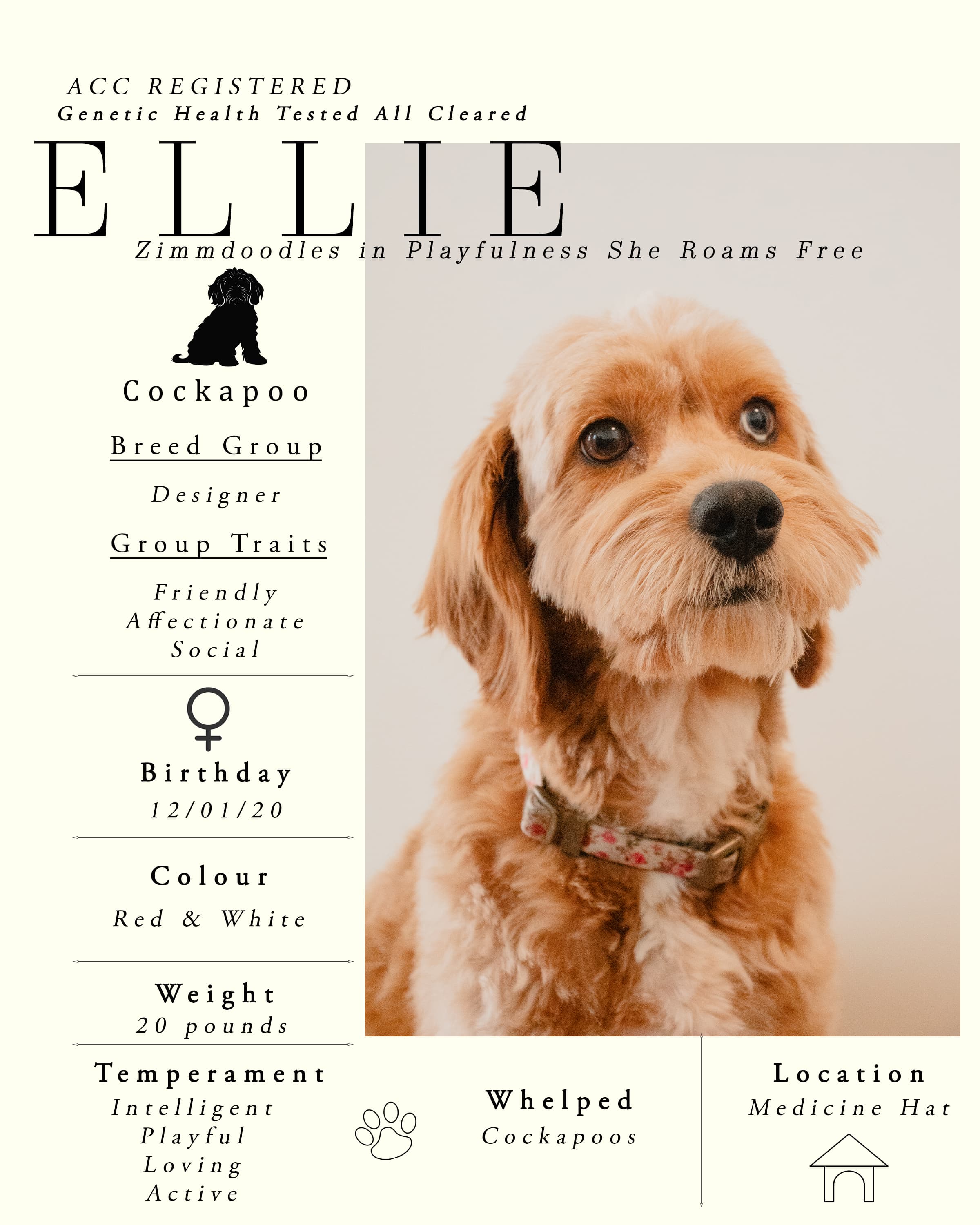 Breeding Qualities: At 20 pounds, Ellie embodies the ideal miniature Cockapoo size and temperament. Her friendly nature, intelligence, and eagerness to engage make her an excellent choice for producing well-socialized puppies with outstanding personalities.